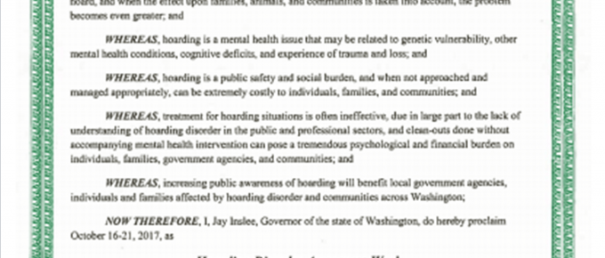 Hoarding Disorder Awareness Week in the State of Washington is October 16-21, 2017 as declared by proclamation signed by Governor Jay Inslee on August 8, 2017. It is so valuable and important that …